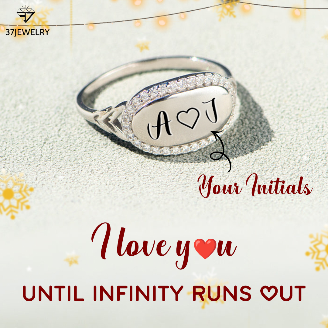 For Love - S925 I Love You Initials Customized Cubic Zirconia Oval Ring
