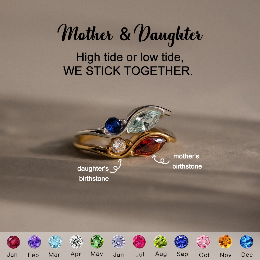 Mother & Daughter stick together Personalized Birthstone Wavy Ring