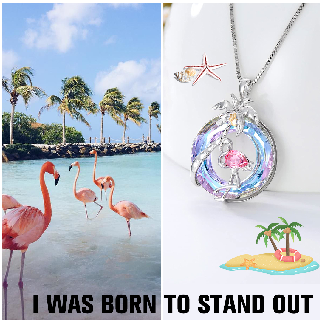 S925 Palm Tree and Flamingo Crystal Necklace