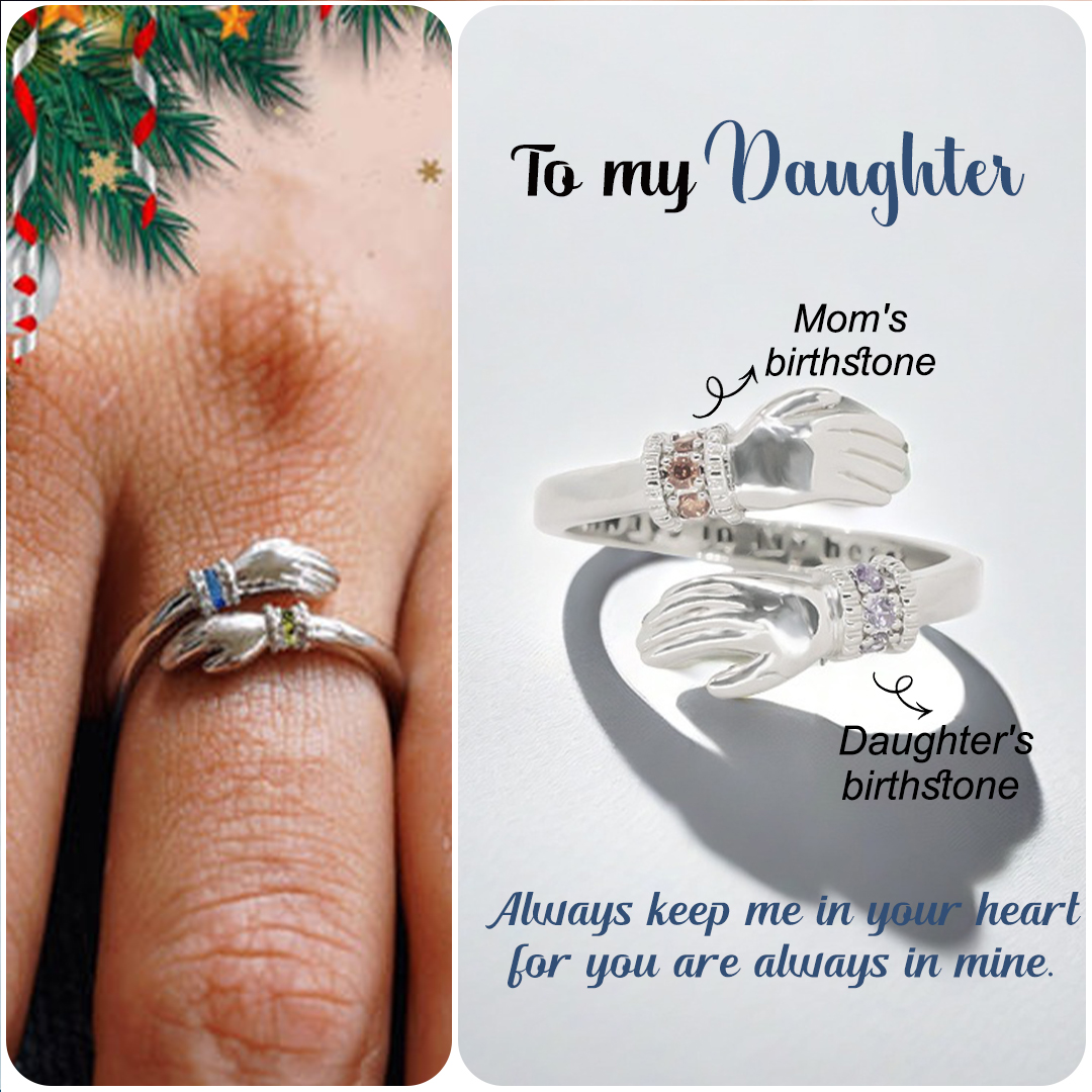 For Daughter - S925 Always Keep Me In Your Heart Custom Birthstone Hug Ring