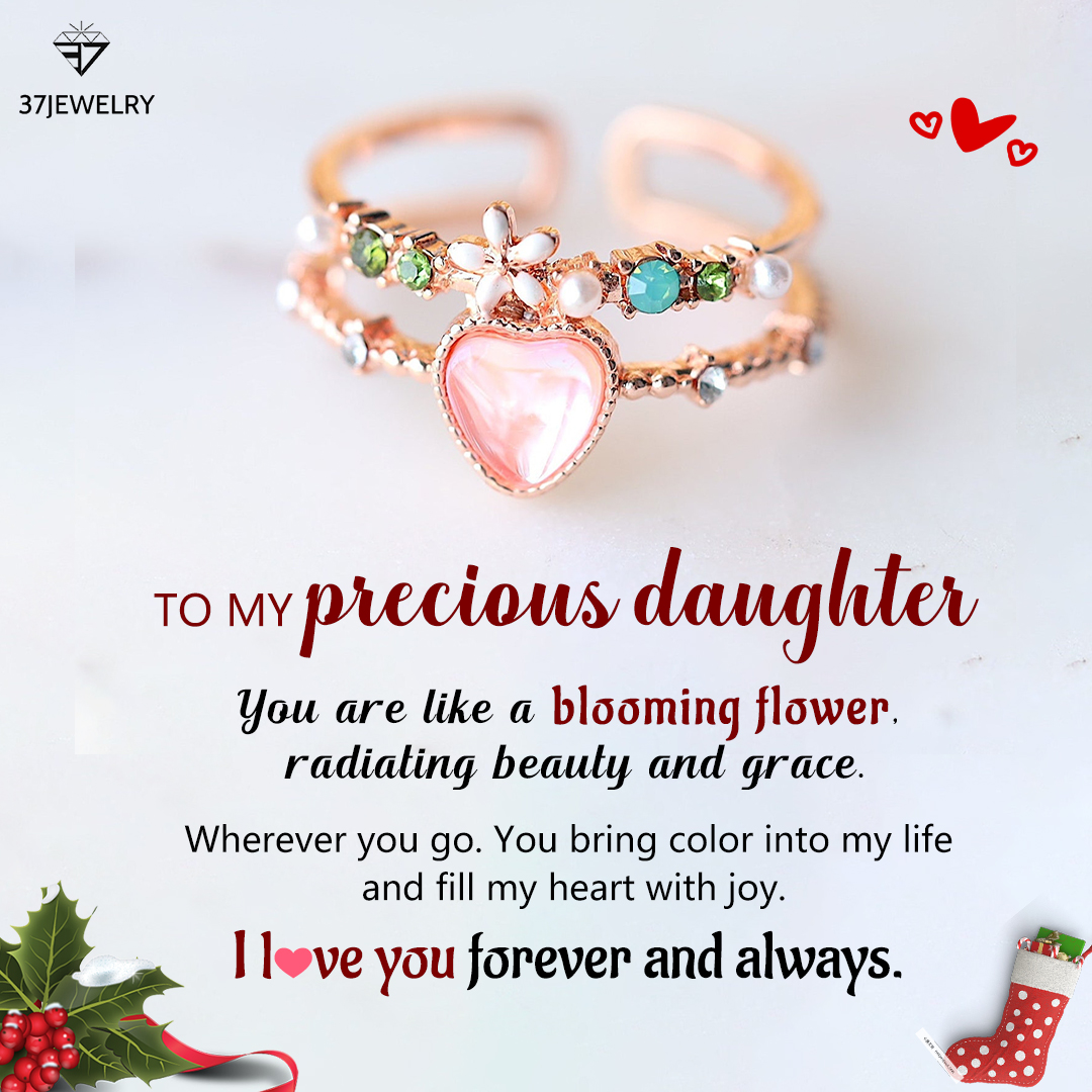 For Daughter - S925 I Love You Forever And Always Heart Flower Ring