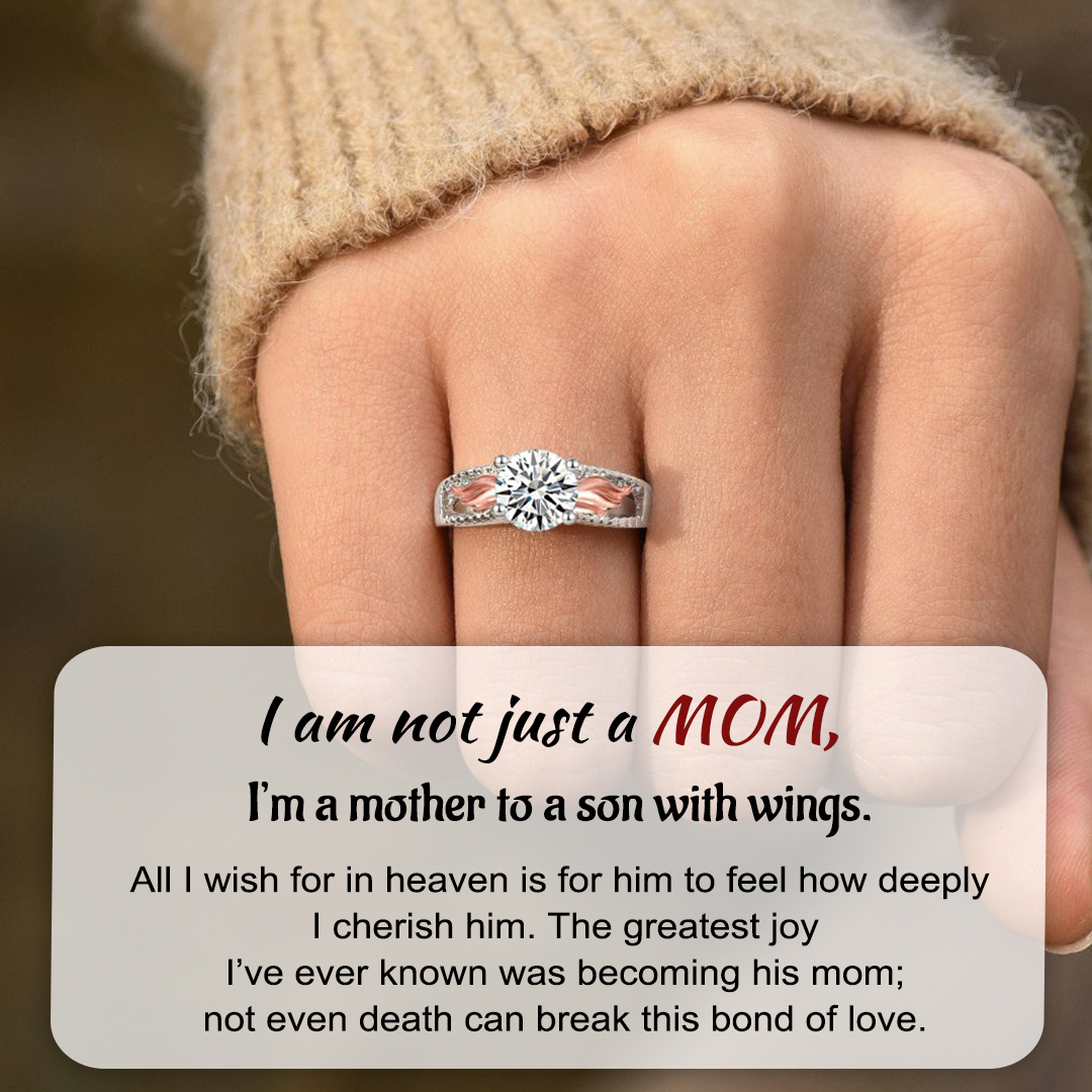For Memorial - I’m A Mother To A Son With Wings Cubic Zirconia Wings Name Custom Ring