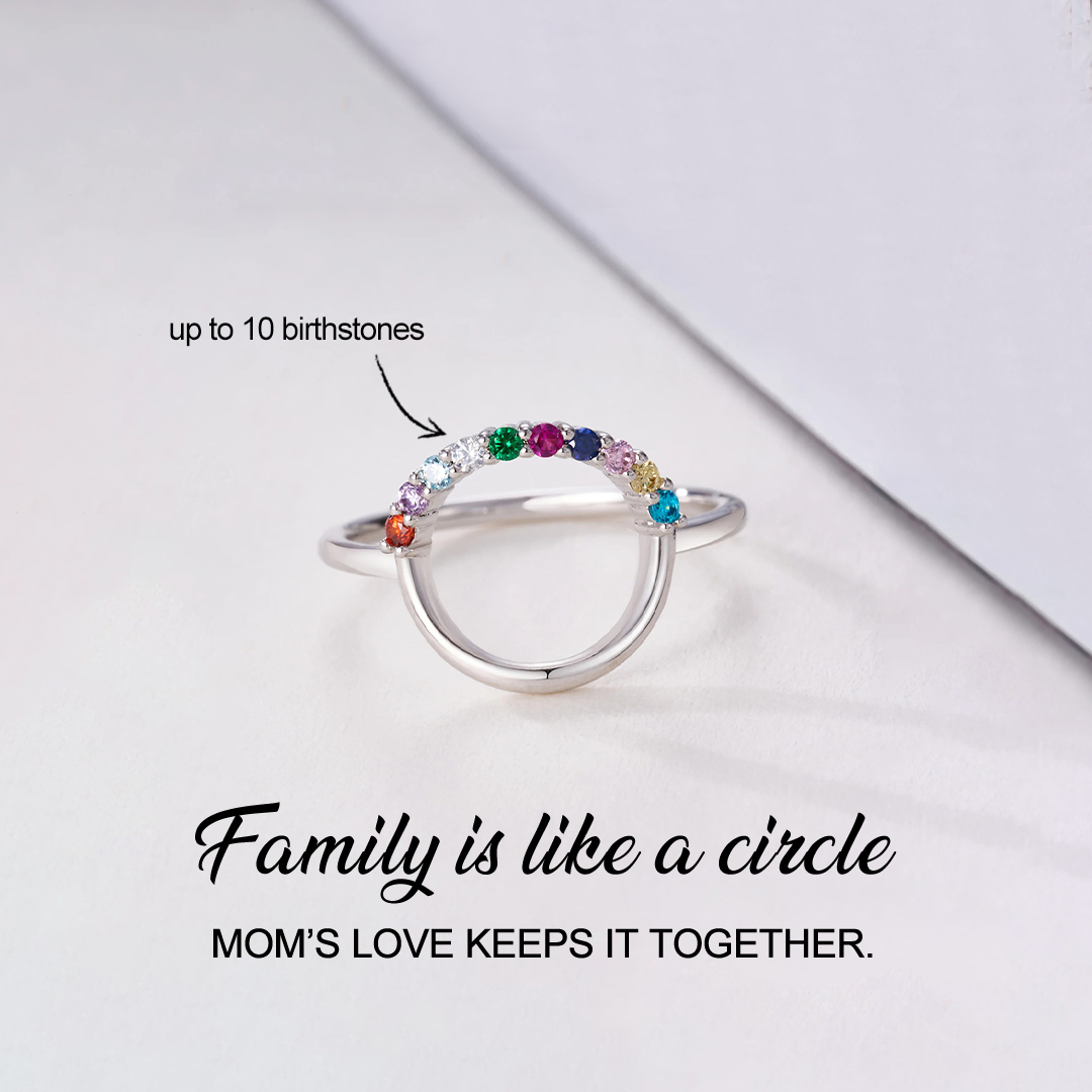 For Mom Grandma- Personalized 1-10 Family Birthstones Reunion Circle Women Ring