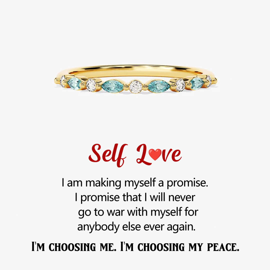 For Self-It's OK To Not Be OK Cyan Diamond Thin Ring