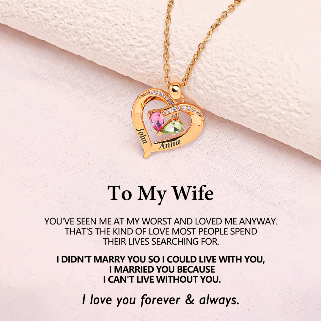 For Wife - I Love You Forever & Always Customized Double Birthstones & Names Necklace