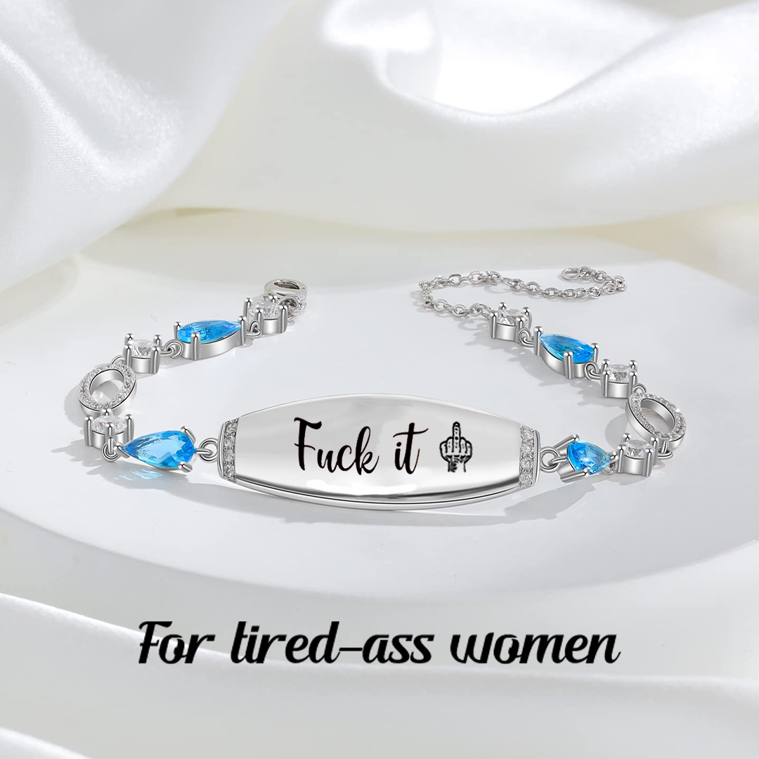 Fuck It Engraved Blue Cubic Zirconia Bracelet