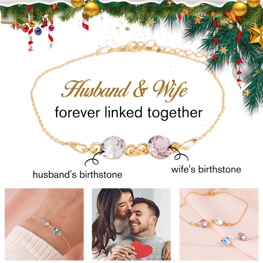 Husband and Wife Forever Together Custom Birthstones Bracelet