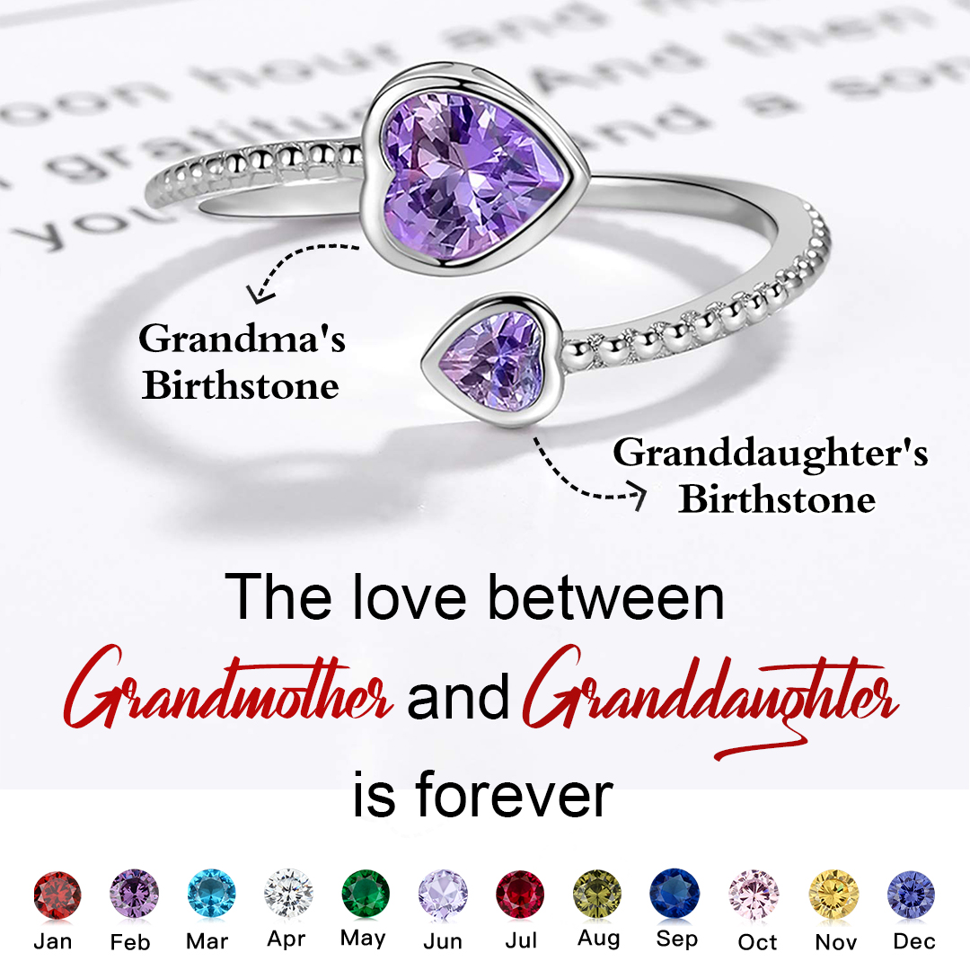 S925 The Love Between Grandmother And Granddaughter Is Forever Double Heart Birthstone Custom Ring