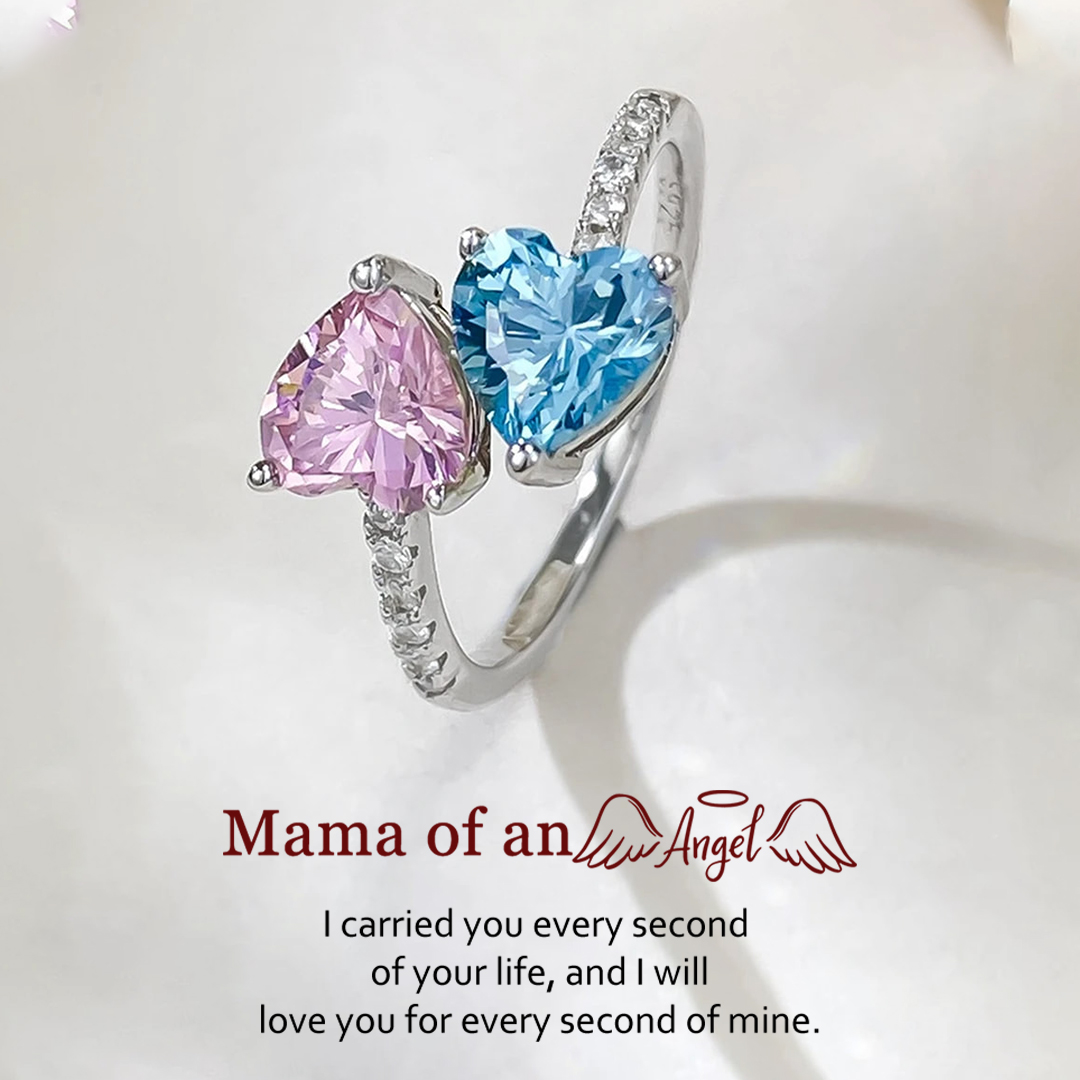 Mama of an Angel Pink & Blue Diamond Open Ring